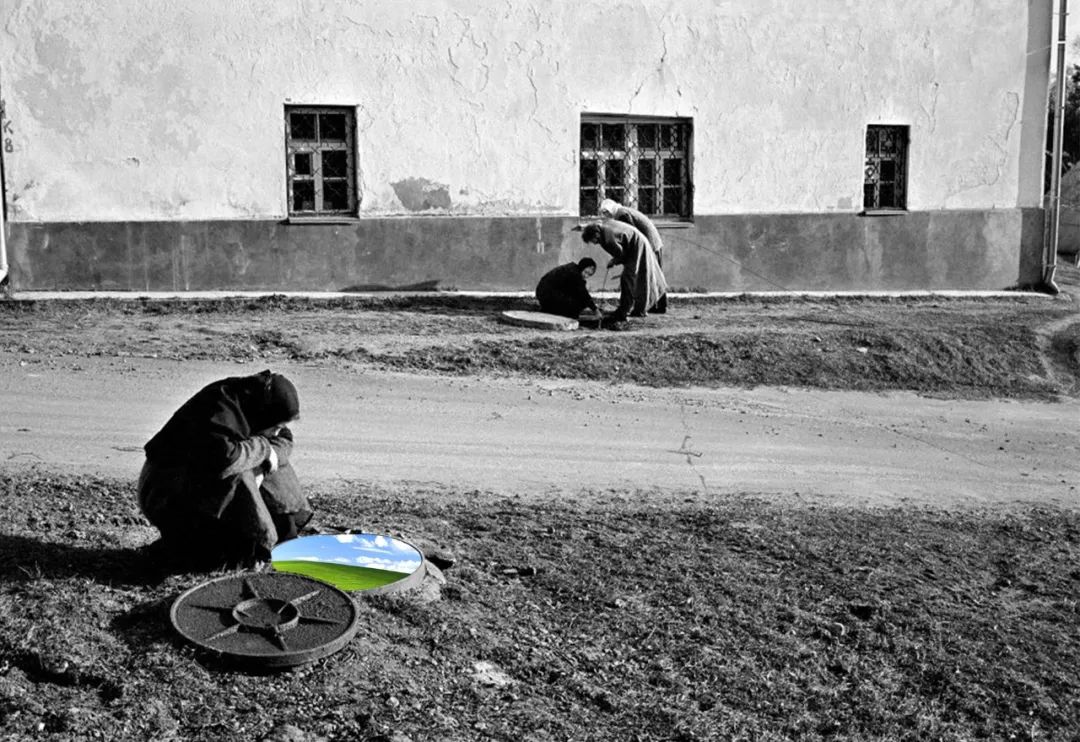 這張圖原來是有個人看着下水井,我把他看的地方替換成了電腦桌面。