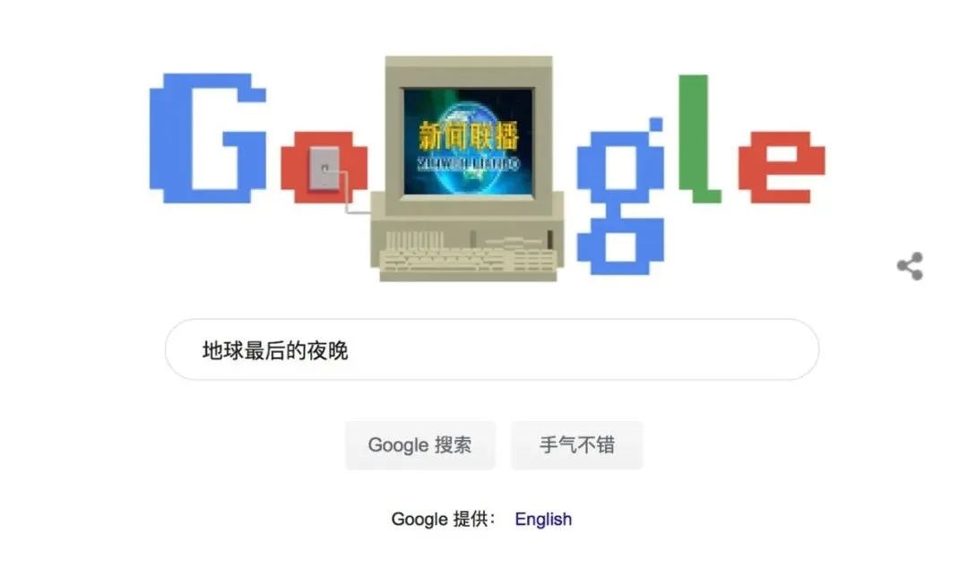 隨着線下的塗鴉做得越來越多,我對線上的那些作品越來越沒有什麼興趣了,這個時候我的P圖也越來越偏塗鴉、偏卡通了。我改造了一張Google的頁面,給它起名叫《地球最後的夜晚》。