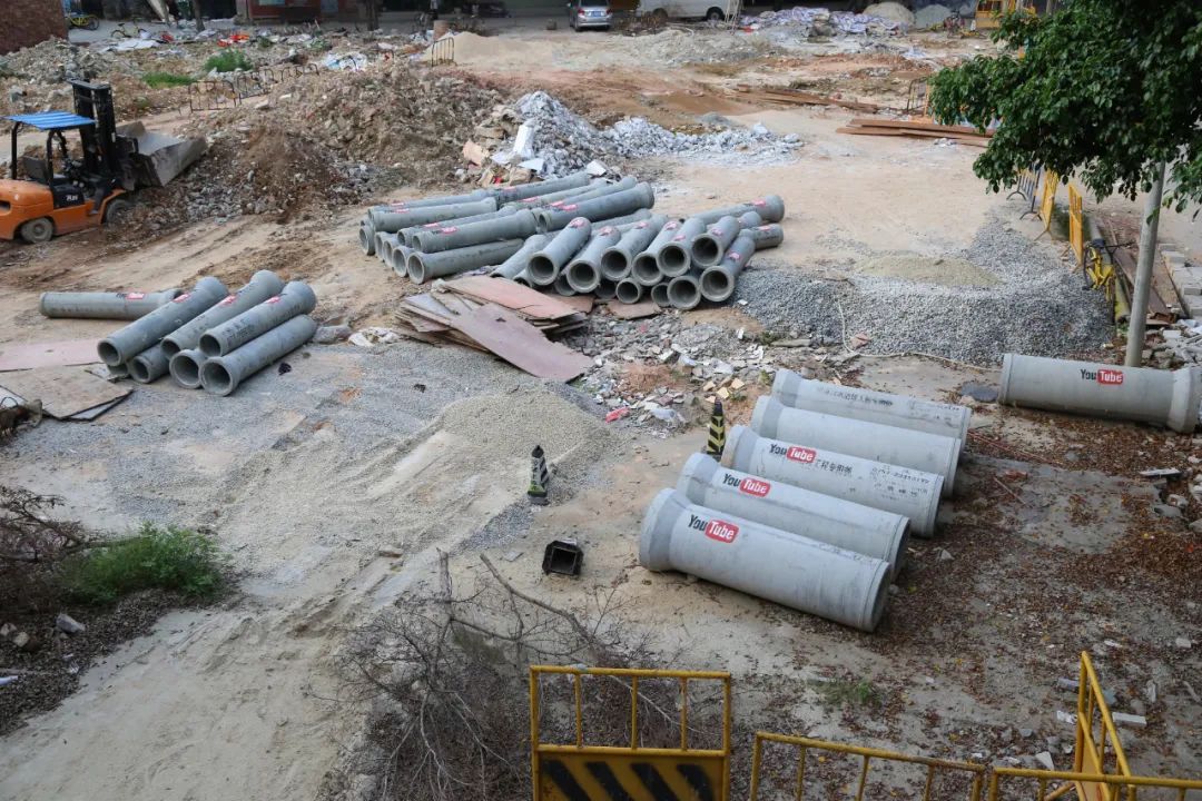 於是我帶了一些三色的塗鴉板,大家都知道YouTube在國內有一個暱稱叫“油管”,我就在這些水泥管上全都噴上了“You****Tube”的標誌。