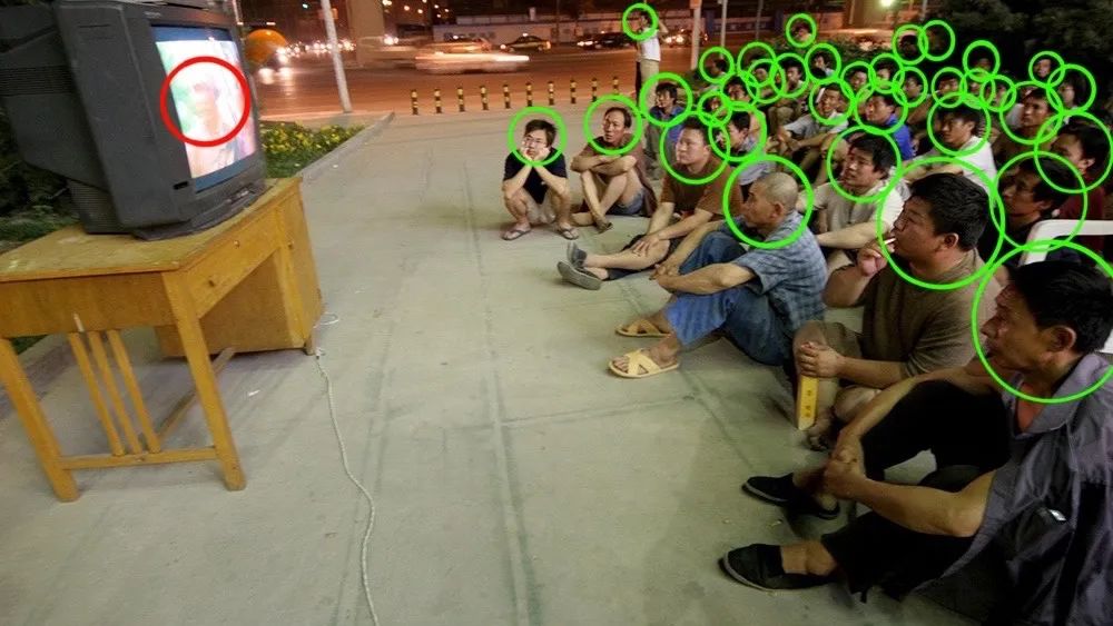 一羣老年人、中年人聚在一起,大多數都是男性,看着這個電視機,我取名叫《憂傷的嫖客》。