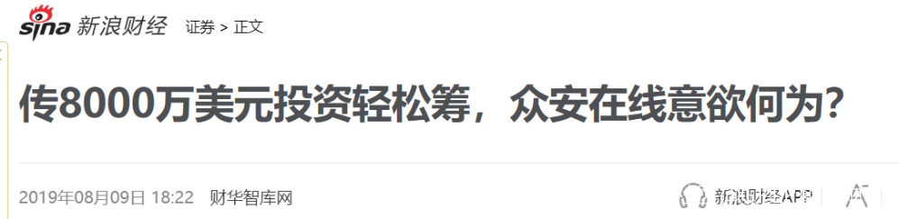 比如,在2019年8月,據財華社消息顯示,眾安在線財產保險股份有限公司(06060-HK;簡稱:眾安在線)計劃投資輕鬆籌8000萬美元。