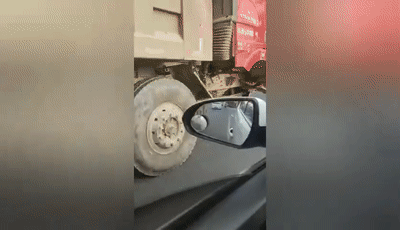 車殘志堅?兩個前輪沒了,貨車還在路上跑…_風聞