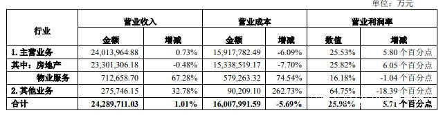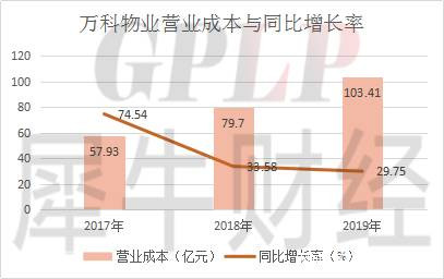 2017-2019年萬科物業的營業成本分別為57.93億元,79.70億元,103.41億元,同比增74.54%,33.58%,29.75%;營業利潤率分別為16.18%,17.44%,17.96%,同比降1.04%,增0.96%,降0.04%。