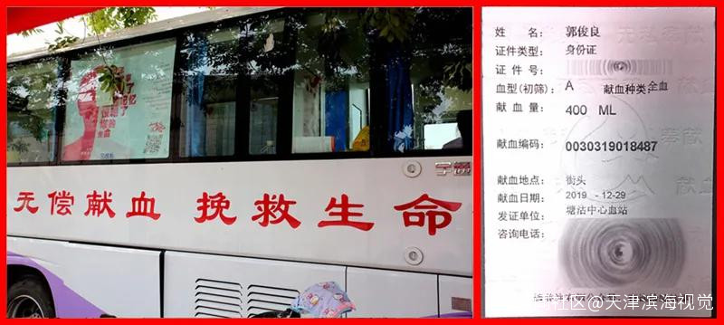2019年12月29日,郭俊良師傅休息沒有當班,他專程來到了海濱街的幸福廣場正門前,先是填了一張表,然後上了一輛車,再被醫務工作者在胳膊上紮了一針,當場獻了400毫升血,之後他依舊正常上班,沒有影響工作。