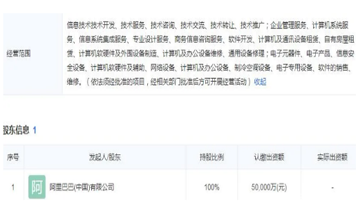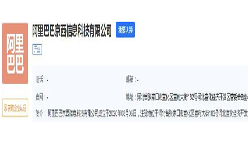 京西公司是阿里巴巴全資子公司,註冊資金五億,註冊地在河北張家口市,經營範圍包括信息技術開發,技術服務,技術推廣等。據説這個阿里新公司是為阿里達摩院和平頭哥芯片服務,主要銷售電子元器件、電子產品和個人安全設備。