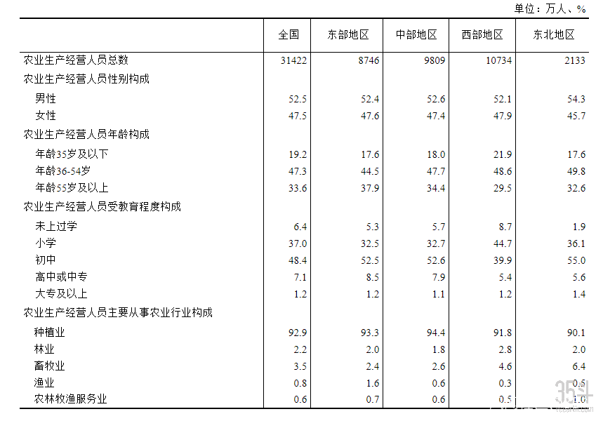 農業生產經營人員數量和結構(2016年) 資料來源:國家統計局