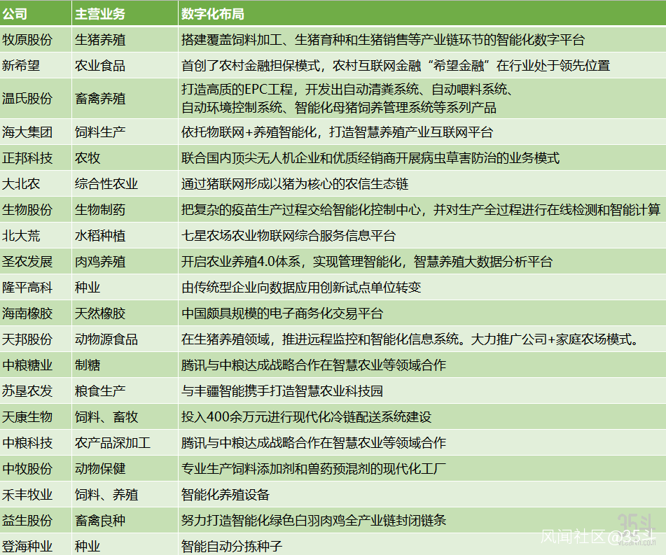 接下來我們主要來看看在生機勃勃的農業現代化進程中,我國傳統農企巨頭有哪些數字化佈局,並重點梳理農業全生產鏈上具有代表性的企業數字化動態。