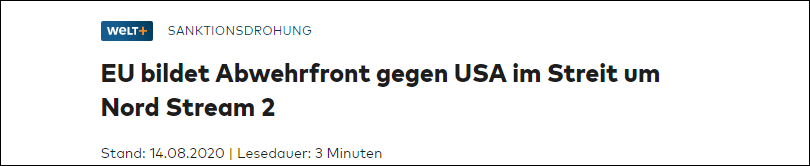 2020年7月底,美國務卿蓬佩奧揚言,要進一步制裁那些幫助參加“北溪2號”的公司。
