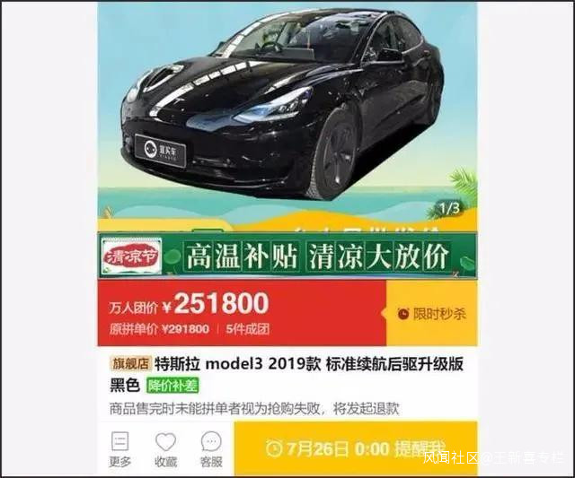 該事件緣起一家名為“宜買車”的拼多多商家發起國產Model3標準續航後驅升級版車型“萬人拼團活動”,對比原售價,便宜了2萬元。