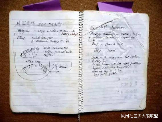 學習中國菜的時候,她的筆記做得超全。混合着圖片的中英文筆記,很有學霸風格。