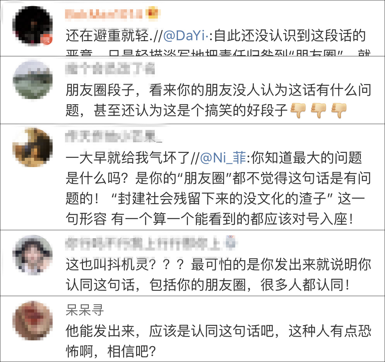 但他的道歉博文並未獲得網友諒解,有人認為其身為公眾人物,並未意識到隨意散播對女性羣體不尊重的言論的嚴重性,還陰陽怪氣內涵網友。