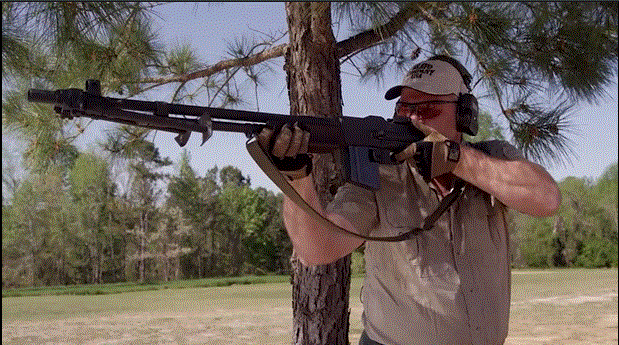 所以射手必須左手握住下護木,右手握住槍頸,雙手用力將槍托抵住肩膀,構成一個穩定的受力體系,來保持每次射擊時眼睛和機械瞄具的平正關係,以便構成穩定的瞄準基線。