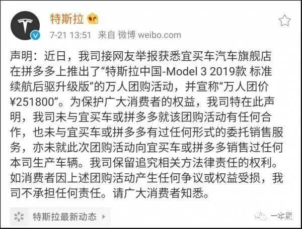 其中涉及到了拼多多、宜買車、特斯拉、以及用户的關係。加上網上的自媒體各有各的屁股,公説公有理,婆説婆有理,這水也越攪越渾了。