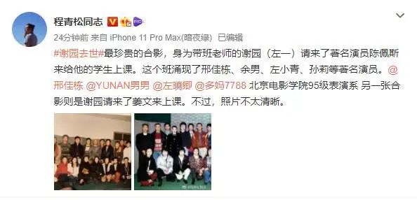 其實以謝園的分數,可以考比電影學院更好的,但當時他對自己沒有自信,覺得自己考理科或者考文科的正牌像北大清華肯定考不上,一般師範可能都懸,他還不願意出北京,這樣衡量下來只能去考電影學院、廣院和中戲這些文化分數線不高的學校。