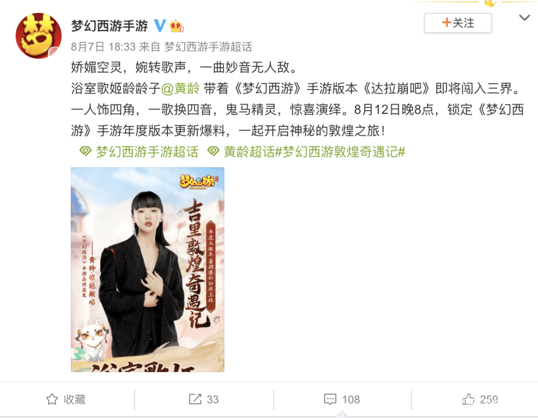 憑藉手遊的目標羣體和藝人影響力的加持,本輪的官宣獲得了良好的互動反饋。官方在接下來的傳播上高舉高打,發佈了黃齡演唱夢幻版《達拉崩吧》的幕後花絮,持續為 812 直播爆料會引入影響力,進一步激發了玩家的好奇心和對新版本的期待熱情。