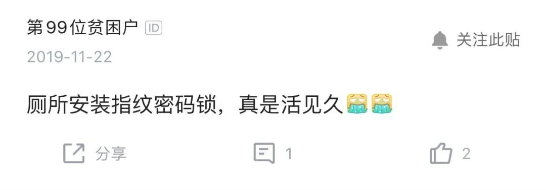 比如,有人直言工作很久後發現,似乎只有在廁所才感覺壓力小,是“清淨聖地”。