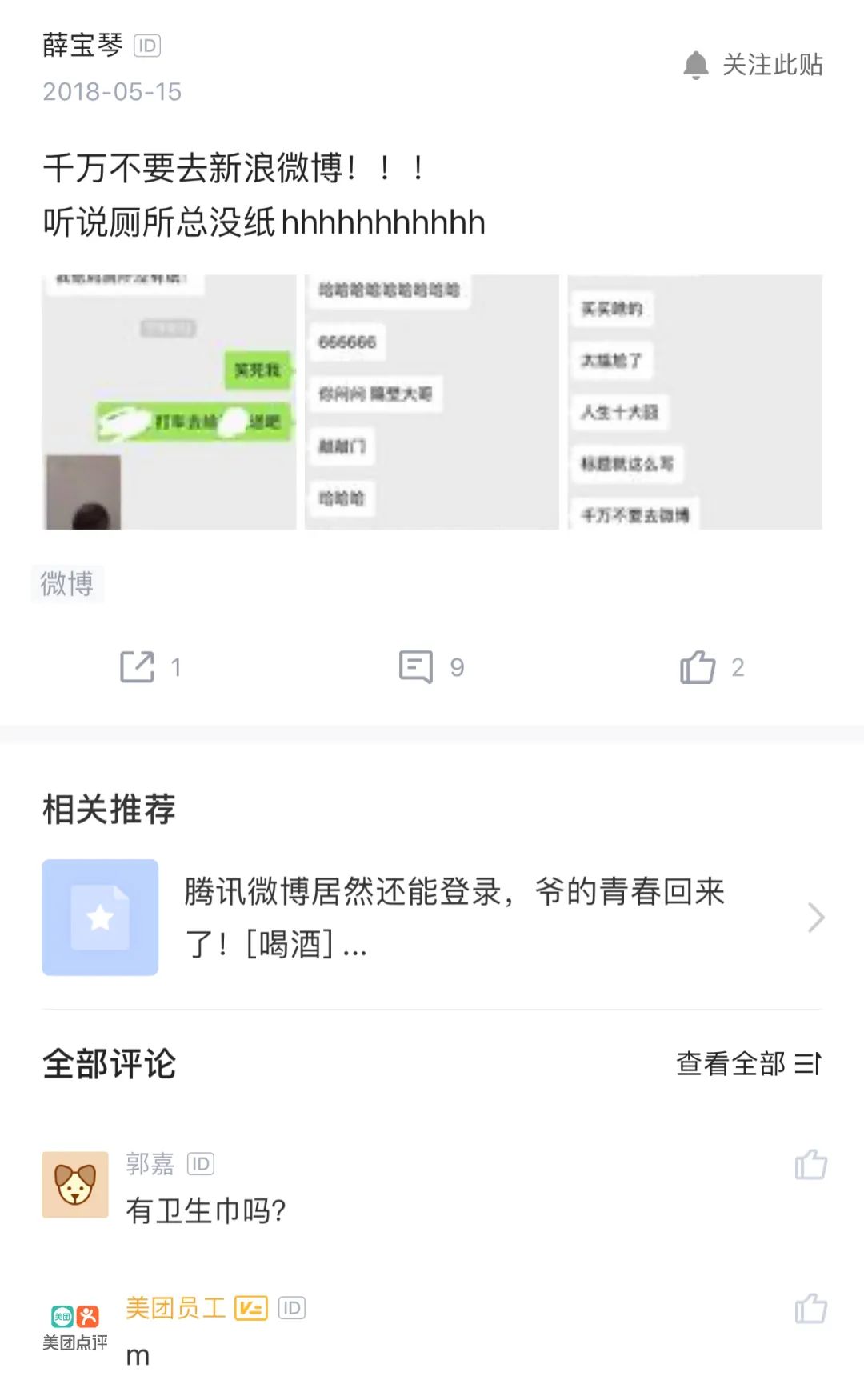 和前面幾家類似,有網友吐槽新浪公司廁所“每次去都沒坑位”,似乎大家都“不上班”。
