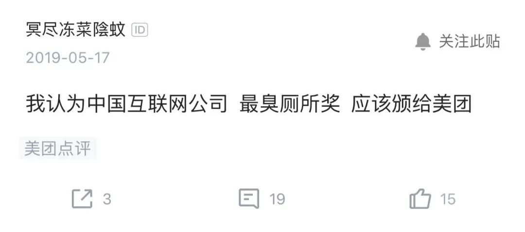 很多網友稱美團廁所味道太重,甚至戲稱美團應該是“中國互聯網公司廁所最臭獎”獲得者。