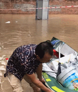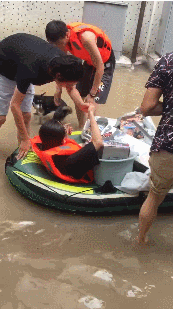 各類衝鋒舟、橡皮艇,在洪水瀰漫的街巷中穿梭,其中大部分都為堅守在崗位的救援人員。