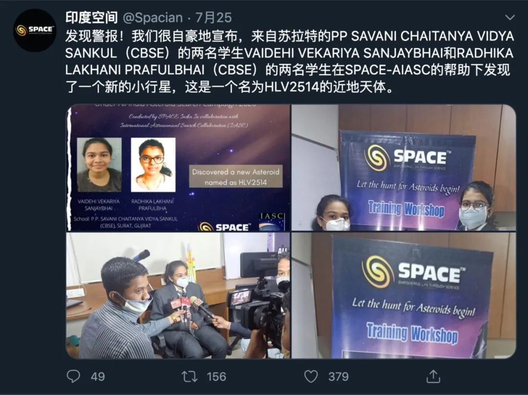 並不是每天都會上演中學生髮現科學家們忽視了的小行星的戲碼,但就在今年六月,這“宇宙級幸運”的一幕真切地發生在了兩名印度女生的身上。