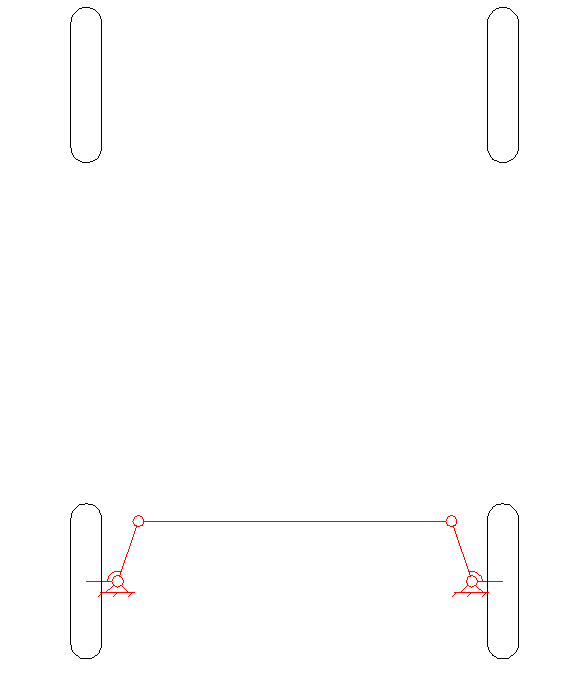 這樣的幾何結構是通過連桿實現的,內外輪的理想阿克曼幾何形狀如圖,