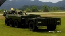 看起來像是二代山貓的人員運輸型,把前置動力室的鐵皮拆得只剩光架子。後面拉了個野戰拖車。