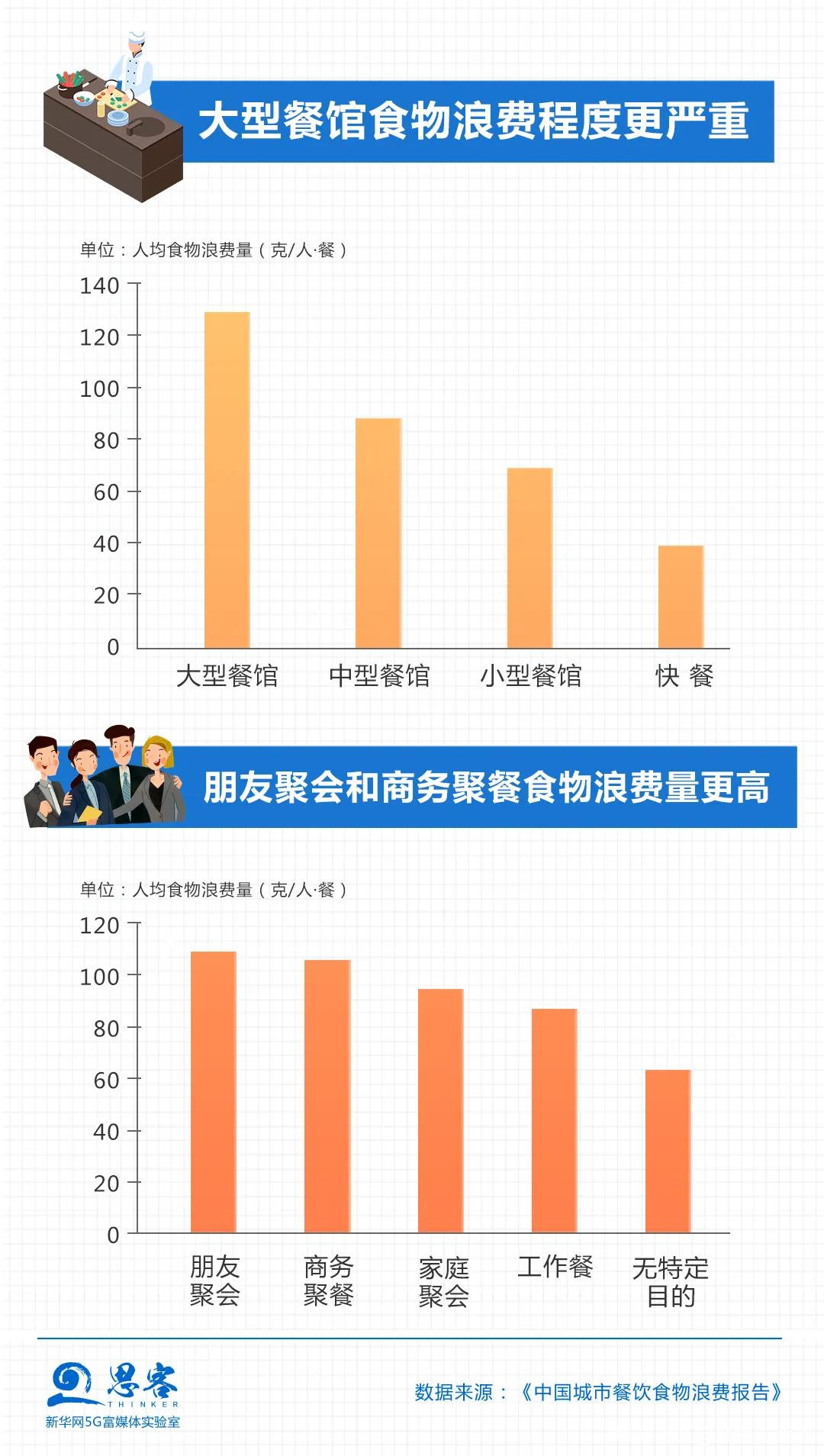 **大型餐館等是餐飲食物浪費的“重災區”。**調研顯示,大型餐館的人均浪費量最高,為每餐每人132克,是快餐人均浪費量(每餐每人38克)的近3.5倍。