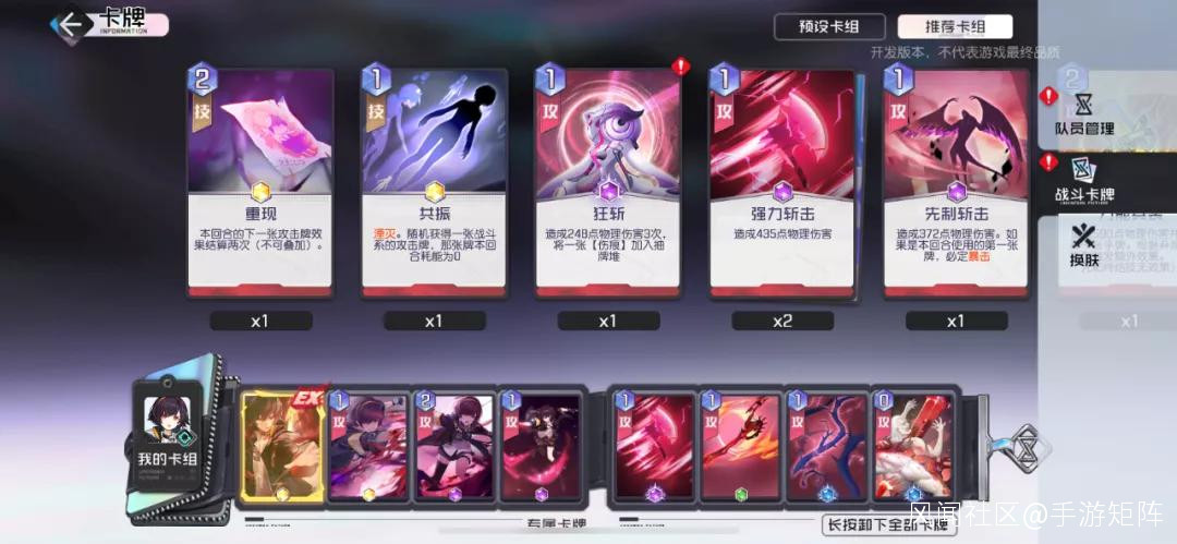 卡牌是《黑潮之上》的遊戲核心,每一位角色可攜帶8張技能卡牌,分別為1張終極技能卡牌,3張專屬技能卡牌和4張通用戰鬥卡牌,玩家需要在卡組中去配置自己的卡牌用於戰鬥。專屬卡牌的獲取方式都比較簡單,只要擁有一個角色,那麼就會同步獲得角色的專屬技能卡和終結技卡,並且通用戰鬥卡牌可以通過主線、日常本等多途徑獲得。