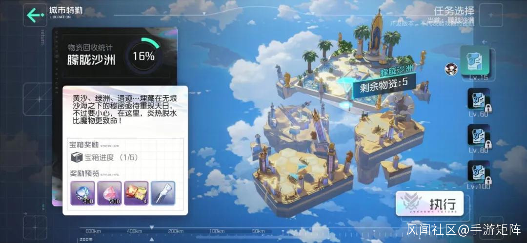 除了主線劇情玩法之外,在《黑潮之上》的備戰室中還有豐富玩法:包括城市特勤、空無之域、通緝令、物資收集、競技場等,在備戰室中出現的玩法大多都是Roguelike + X的創新型玩法。而在時之城中,則有着更多的休閒類玩法,包括榮耀之巔、公會、無盡長廊、任務派遣、放置玩法等等。