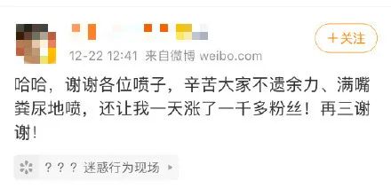 但是人家一點也不在意:你們這些噴子噴了半天,我還漲粉了。