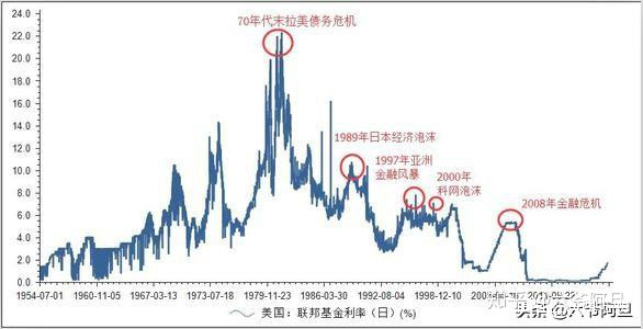 美聯儲近十年來的首次加息,其實既不是因為其國內經濟轉熱,也不是因為通脹抬頭,這是一個向全世界發出的行動信號,美國的每一次的緊縮週期,必然要讓在此之前釋放出去的美元,帶着財富迴流,所以美聯儲一旦加息,就是吹響了美元回家的號角。我在網上找到一張圖,正是對美國利用金融週期收割別國財富的最好註釋,大多數時候的危機都是在美聯儲發動的緊縮週期時發生的。