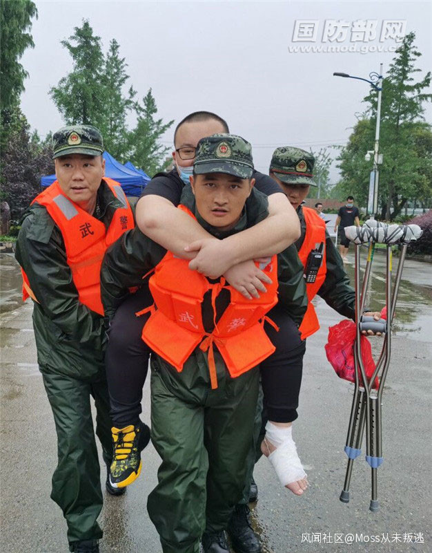 在此,我還想和大家分享一個小故事。那是上個月在安徽歙縣,孩子們的高考因暴雨推遲一天,剛剛執行完堤壩搶險任務的官兵不顧疲勞,立即投入到高考保障工作中。他們用雨傘為考生撐出一條30多米的“雨中長廊”,設立臨時醫療服務站救治生病考生。有一名叫方成的考生因腳踝骨折無法自行到考場參加考試,官兵們硬是輪流接力揹着他跑了1.3公里,準時進入考場。歙縣2000多名考生無一因災缺考。