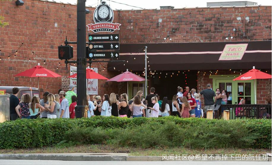 網傳照片顯示8月19日開學第一天,疑似阿拉巴馬大學的學生們在塔斯卡盧薩的酒吧外