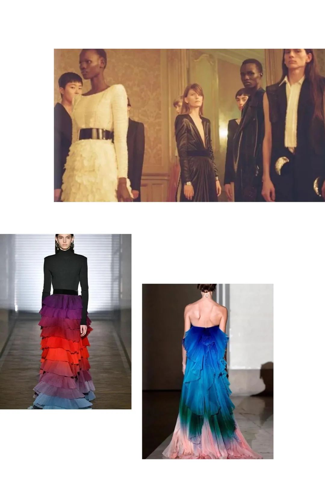 皮質胸衣、經典的smoking、80年代風格的誇張肩部設計以及恰到好處的裸露,無一不是對品牌經典符號的致敬,因而有時尚評論家稱讚“Yves回來了”。
