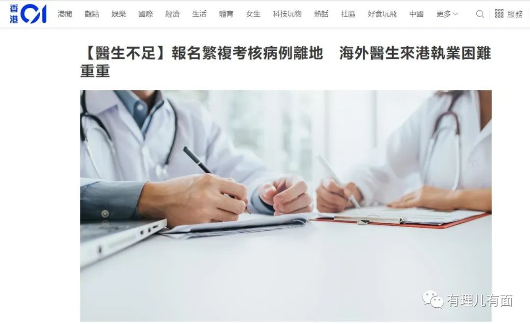 香港醫護人手嚴重不足,每1000名香港市民中,只有1.9名醫生,遠低於OECD(經濟合作與發展組織)統計的世界平均水平每千人約3.99名醫生的標準,甚至低於內地2019年每千人2.4名醫生的水平。再加上香港老齡化嚴重,在香港時常能見到古稀老人依然在工作,醫療需求實際上比內地更大。