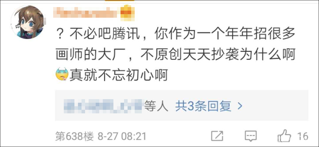 眾多網友紛紛譴責騰訊的抄襲行徑。
