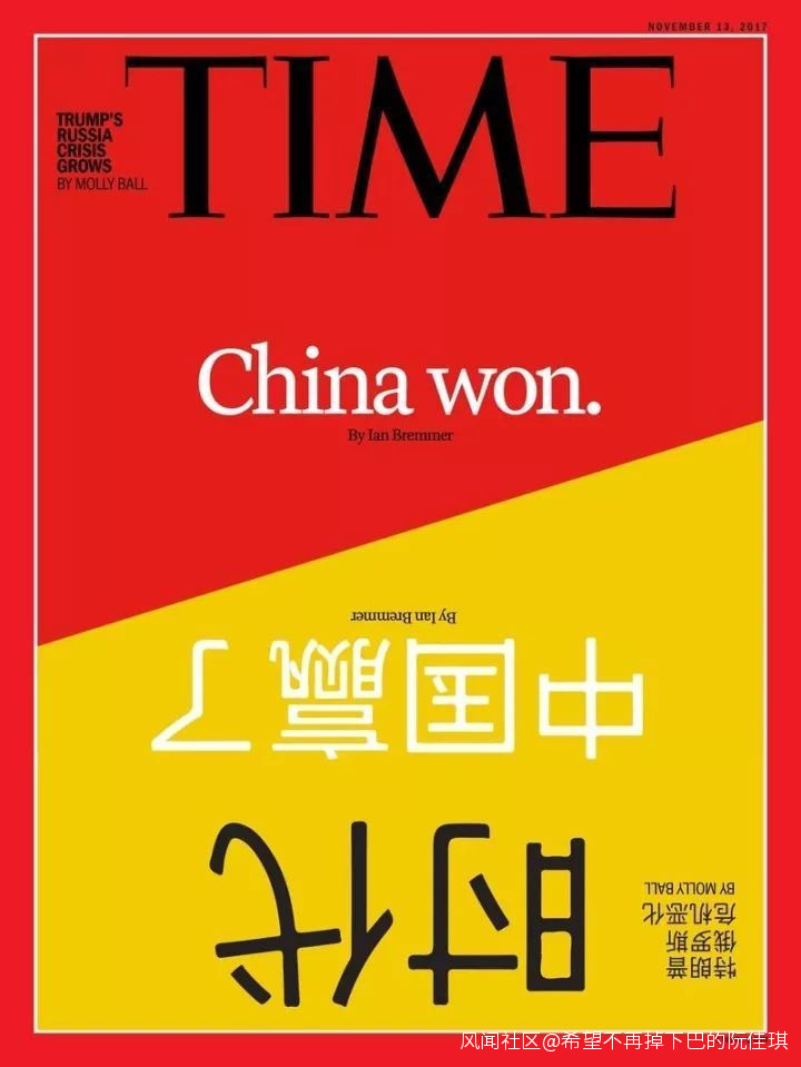 Ian Bremmer還是美國知名政治學者。2017年特朗普來華,美國《時代》週刊亞洲版用中英兩種文字寫上“中國贏了”,這是《時代》封面第一次出現兩種語言,Ian Bremmer就是這篇封面文章的作者。