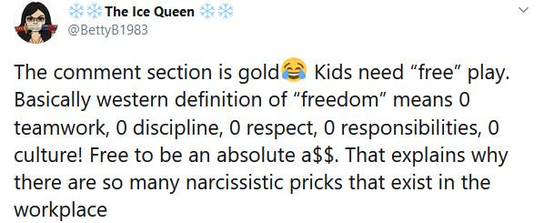 還有人氣到直接反懟,“西方對‘自由’的定義是:零團隊、零紀律、零尊重、零責任、零文化!”