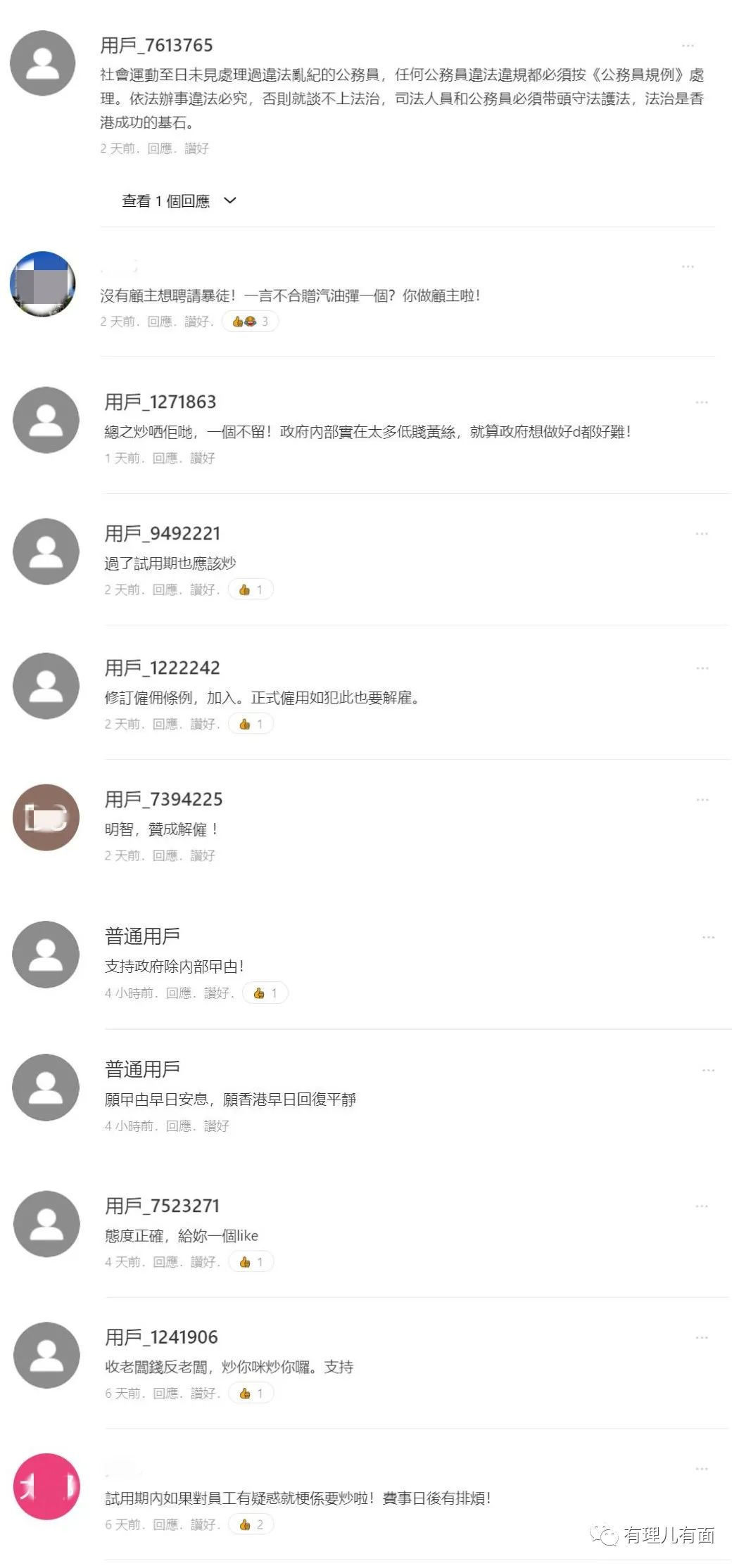 市民的眼睛是雪亮的,公務員試用期新規出台後,讓我們看看香港網民的態度: