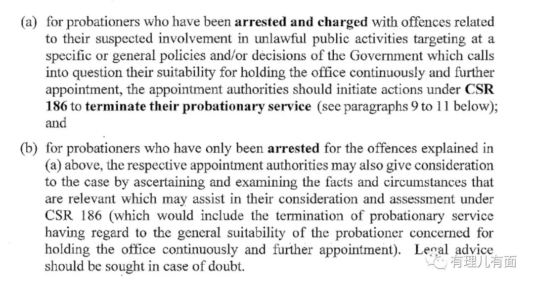 香港公務員事務局8月14日致函各政府部門主管,表明若有正處於試用期的公務員,因參與非法公眾活動被捕並遭檢控,不論審訊結果如何,都應立即解僱。