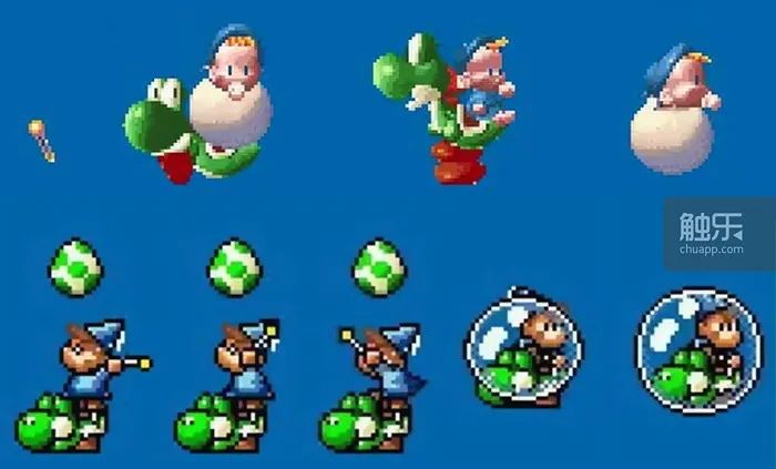 成功的背後凝聚着汗水,引入耀西這隻坐騎,也就意味着團隊需要給馬力歐和耀西設計兩套不同的能力。在開發階段,兩套能力的創意有時會互相交換。