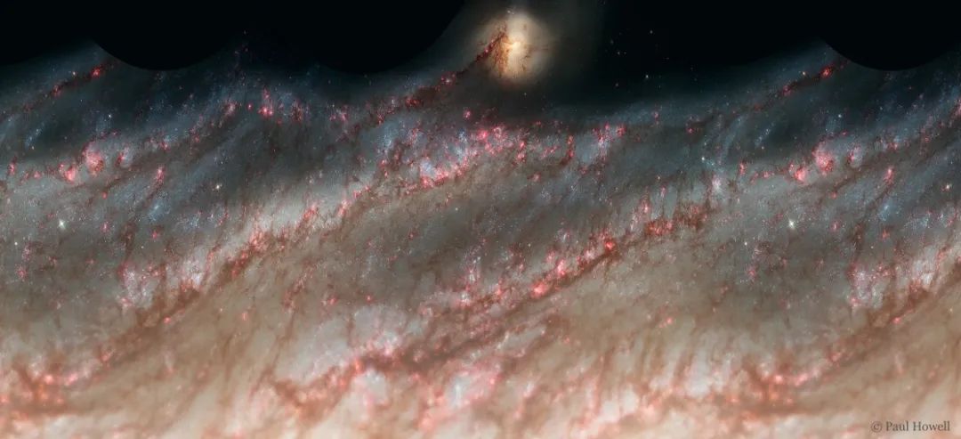 通過對一幅哈勃空間望遠鏡2005年拍攝的M51特寫照片進行數字化變換,這個6萬光年大小的旋渦星系的旋臂被伸展開來。