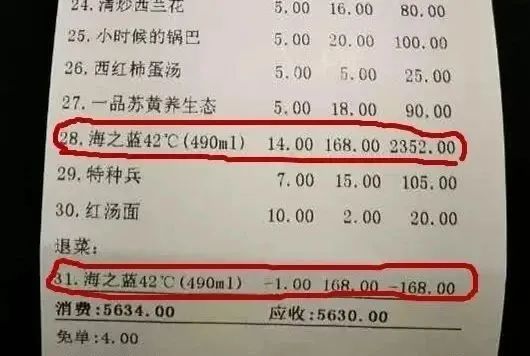 當晚聚餐菜單顯示,5桌師生,消費了13瓶白酒。