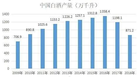 無論是生產還是消費端,白酒產業這兩年都處在明顯下滑的趨勢中,到2018年基本回縮到2010年的水平。