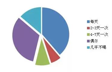 還有一個有意思的現象。據中國城市居民白酒飲用頻率調查數據,“基本不喝白酒”與“每天都喝白酒”的比例,基本是五五開。