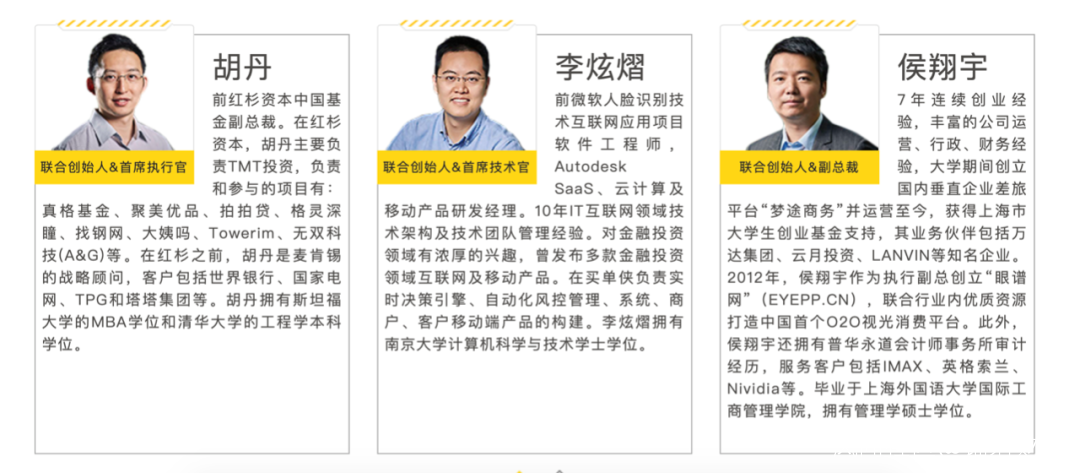 其中,胡丹系前紅杉資本中國基金副總裁,在紅杉資本主要負責TMT投資,負責和參與過的項目有:真格基金、聚美優品、拍拍貸、格靈深瞳、找鋼網、大姨嗎、Towerim、無雙科技(A&G)等。