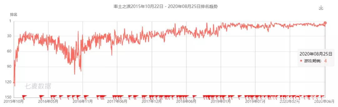 同時,由於2019年以來版號收緊,導致廠商過往通過不斷推出新產品收割用户的策略開始失效,如何保證單款產品的長線收入,創造出能夠持續獲得高流水的常青樹產品,成為許多廠商希望解決的問題。這種市場環境下,《率土之濱》上線5年來一直保持着活躍人數、同時在線、運營收入等各項數據的穩定增長。截止2020年8月下旬,仍穩居App Store暢銷榜前10,據作者從網易工作人員得到的消息,本季度《率土之濱》的活躍玩家與收入再創歷史新高,堪稱國內手遊界的長青樹,更是值得其他SLG產品學習的範例。