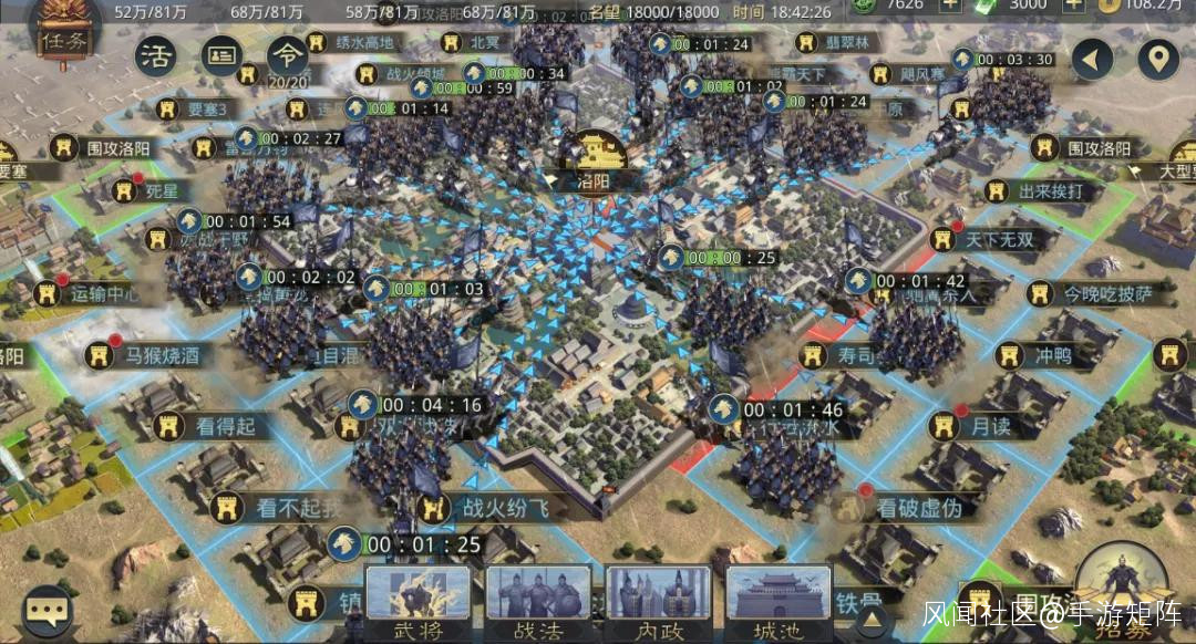 亞當·斯密的《國富論》曾指出:人類社會的本質是分工協作。《率土之濱》的玩法規則同樣催生出了玩家的分工協作,以及相應羣體的社交關係和文化特色。比如被稱為“率土第一次大分工”的攻城戰,勝利條件是在一小時內清空守軍和城池耐久,否則守軍數量會立即恢復,城池耐久也會慢慢恢復。於是玩家就分成不同的羣體,指揮官根據情報和戰術決定發起總攻的時間,高戰力的玩家負責先消滅守軍,普通玩家則消耗城池。遊戲內越來越細分和專業化的協作分工,讓同盟的戰鬥力愈發強大,玩家因此形成共生共存的小型社會。