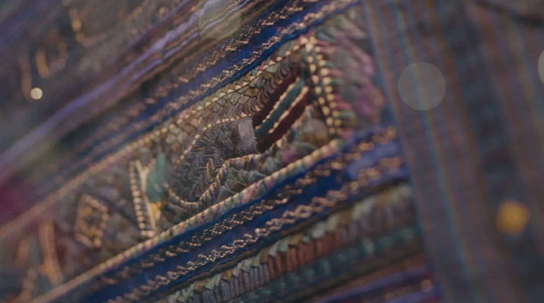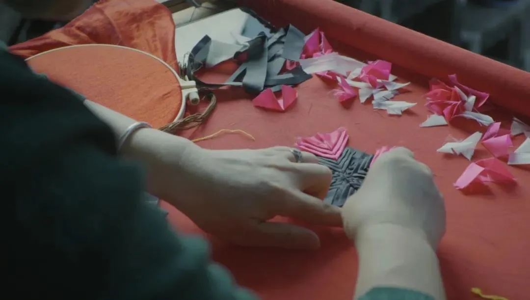 1993年,24歲的李紹玉把剛出生幾個月的孩子託付給家裏的老人,和丈夫一起走出大山,到上海的一家服裝廠打工,成為中國最早那批進城農民工。服裝廠生產的衣服也有繡花的圖案,是機器繡的,偶爾也會生產出一些刺繡殘次品。這時,李紹玉笑眯眯地拿起針線,把殘次的繡花片補全。如果衣服不幸在繡花片那裏出現了洞眼兒,李紹玉能“把它修復得讓你看不出來是補的”,她語氣自豪地説。