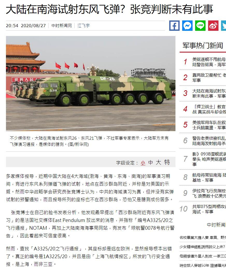 這次也是,編造出了個“東風-26B”導彈從青海,東-21D從浙江各發射一枚的消息……也是很神奇就是了。